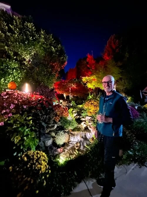 Last weekend I was invited to tour a backyard like no other. This is Gerard Touhey, the water feature superhero. This man SERIOUSLY redefines a backyard escape. On Sunday, I joined some of my beloved family for dinner in Easton, PA -thank you cousin Sharon, for making these arrangements. After dinner, we toured this magical oasis Gerard simply calls his “yard”. To say I was blown away would be an understatement. I had no idea what to expect and just thought we’d be seeing a few aquascapes and traditional ponds. I was wrong.
