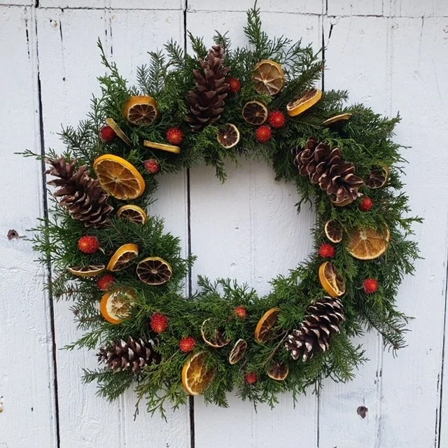 Join Amber Lagonegro from Rising Hill Farm as she guides you through the process of creating a full evergreen wreath on a reusable wire frame. You'll have a variety of dried flowers, fruits, pinecones, ribbons, and other accessories to choose from so you can customize your creation. You'll leave our workshop with a unique wreath of your own and the skill set and knowledge to create more if you'd like. Light refreshments will be served.